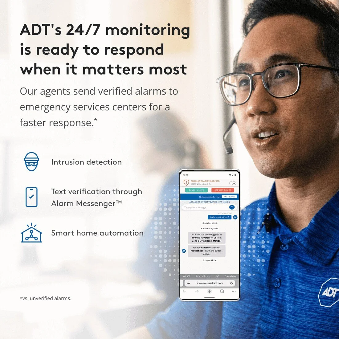 ADT is the most trusted**, backed by award-winning 24/7 monitoring